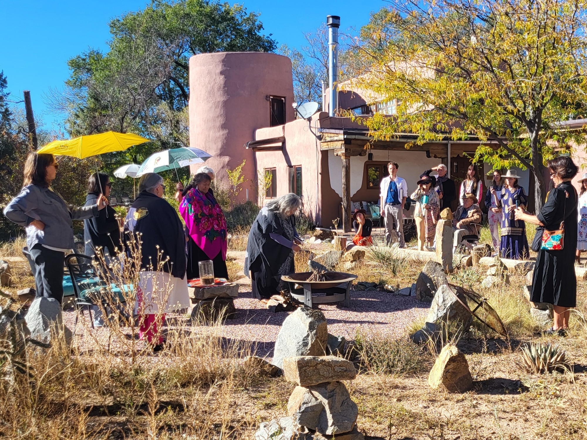 In the days leading up to the event, Synergetic Press had the pleasure of hosting the Grandmothers arrival in New Mexico at Synergia Ranch, where they reconnected with old friends and toured the Ranch’s inspiring projects. The Grandmothers had the chance to explore the Ranch’s gardens and greenhouses, witnessing the collaborative efforts in organic farming, renewable energy, and ecological restoration. Their presence at Synergia felt like a homecoming, with the Ranch’s tranquil landscape providing a space for reflection and celebration of the Grandmothers’ journey together.