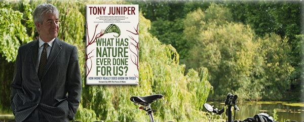 A series of book signings and talks with environmentalist Tony Juniper, campaigner and advisor to His Royal Highness The Prince of Wales, and author of best-selling environmental tome What Has Nature Ever Done for Us? to be published in the U.S in August 2013.