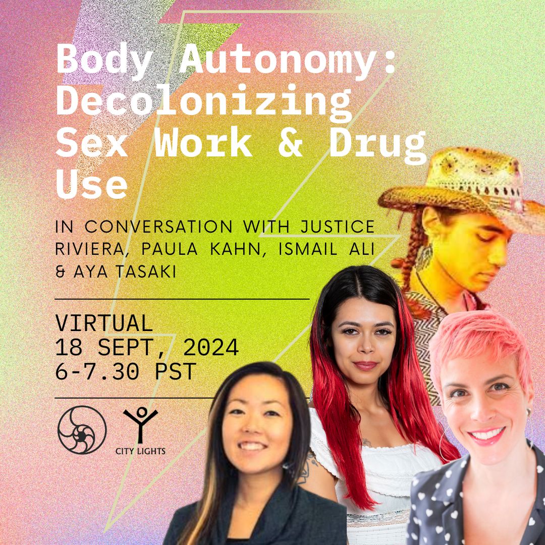 Join us on September 18th at 6:00 PM PST for an enlightening virtual discussion co-hosted by City Lights and Synergetic Press. This special event will feature a panel of remarkable voices, including Justice Riviera, Paula Avila Kahn, Ismail L. Ali, and Aya Tasaki, as they dive into the transformative anthology Body Autonomy: Decolonizing Sex Work & Drug Use.