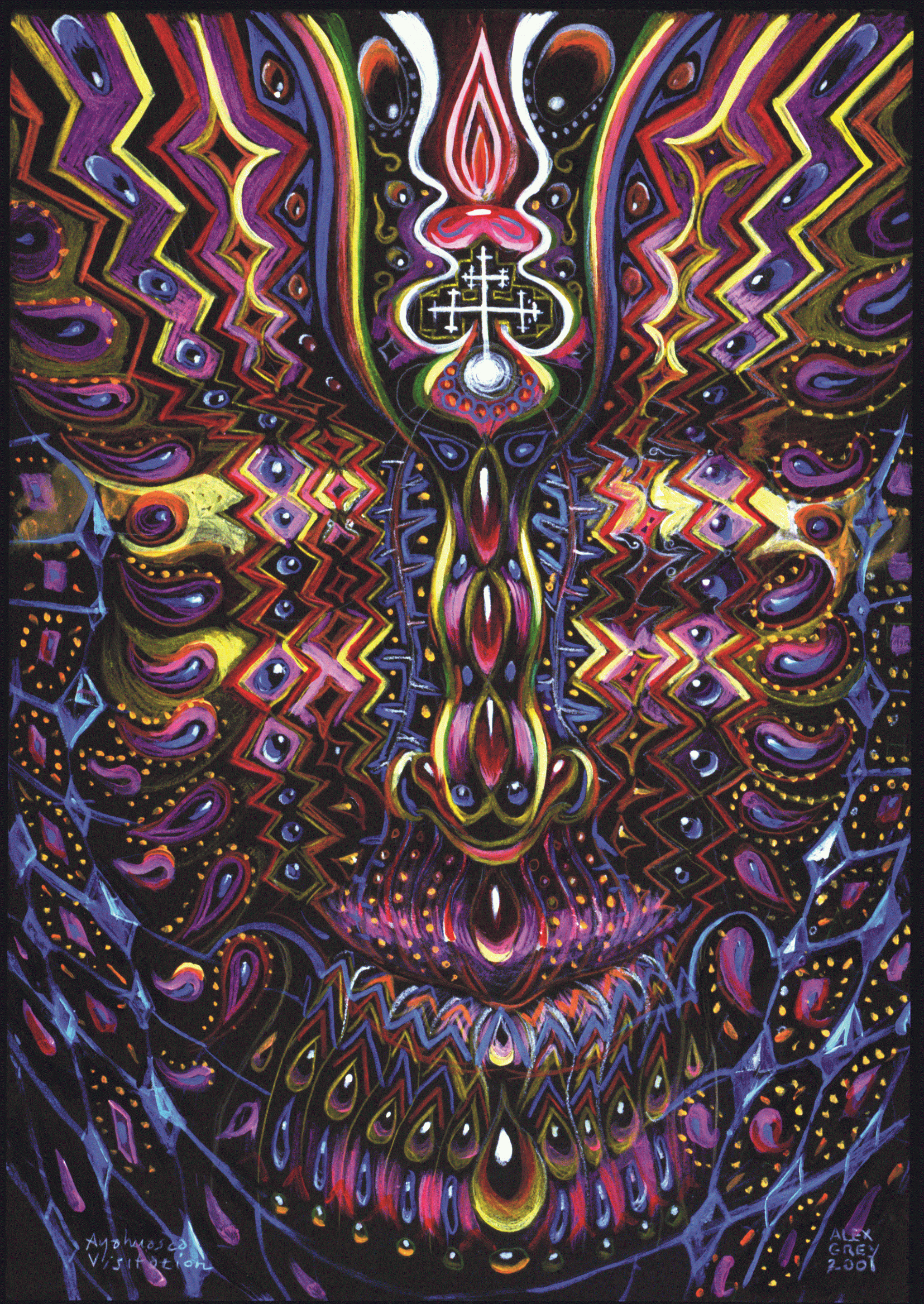 ALEX GREY, artist, poet, author, minister, is best loved for his paintings portraying multiple dimensions of reality, interweaving biological anatomy with psychic and spiritual energies. His books, Sacred Mirrors, The Mission of Art, Transfigurations, Art Psalms and Net of Being, trace thevisions and mystical experiences that shaped his spiritual creative life and address how art can evolve the cultural body through icons of interconnectedness. Co-founded with his wife, the artist Allyson Grey, Chapel of Sacred Mirrors, CoSM is an interfaith church celebrating creativity as a spiritual path. Alex has long been a practitioner of Buddhism and has taken a stand for cognitive liberty. More at www.alexgrey.com.