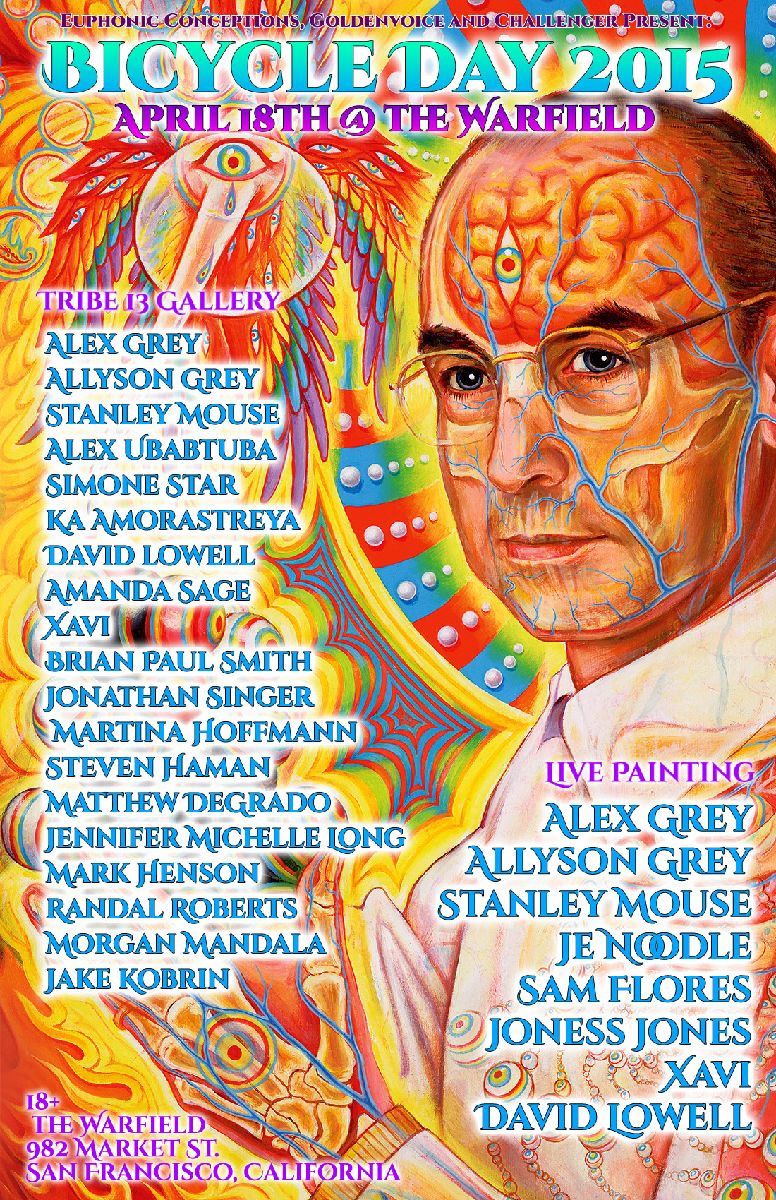 You can commemorate this momentous event in the history of psychedelics with live painting by Alex and Allyson Grey and other visionary artists in San Francisco, CA. Tickets are available here: http://www.axs.com/events/268841/bicycle-day-tickets.
